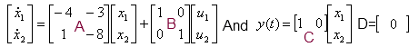 A=[ [-4,-3],[1,-8] ] Matrix, and B=[ [1,0],[0,1] ] Matrix and C=[1,0] Array vector